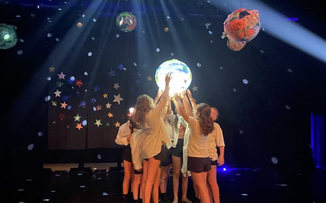 Children are divided into groups according to their age in order to have an experience tailored to their level. Throughout the week, each group creates its own show with the support of professional dancers and a visual artist. The kids also participate in visual arts workshops to design sets and props that will be an integral part of their creation.